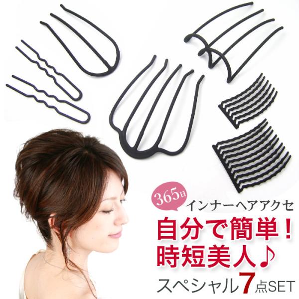 インナーヘアアクセ オールインワン4点セット 最新eコーム入り 夜会巻きもハーフアップもお任せ 髪のお悩み解決